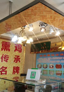明明熏雞:傳統工藝(鐵鍋熬煮4-5小時),色澤紅潤,肉質酥嫩。